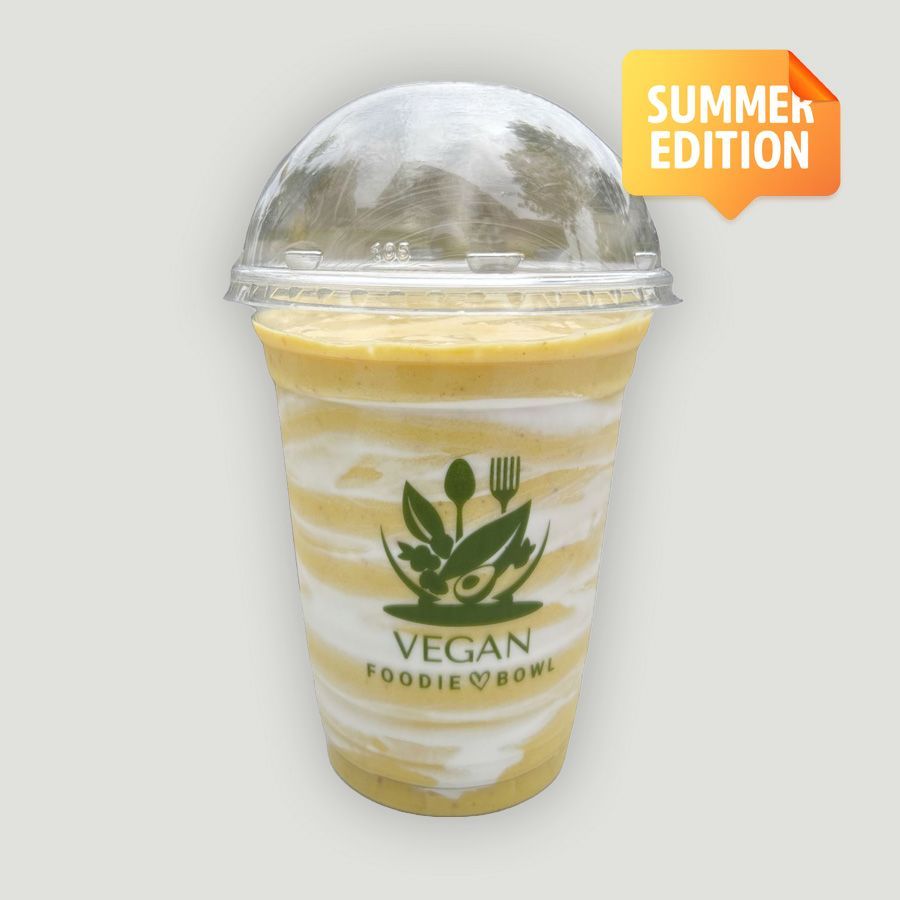 A bright, tropical blend of mango, banana, turmeric & coconut cream—refreshing, vibrant, and packed with goodness! Organic banana, mango, lemon, dates, turmeric, coconut yogurt, coconut water, gluten free oat milk